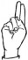 На ћирилици написано РАДНА БАЦКОВИЋ састоји се из 13 слова [?]. Исписано ћириличном једноручном азбуком за глувонеме: